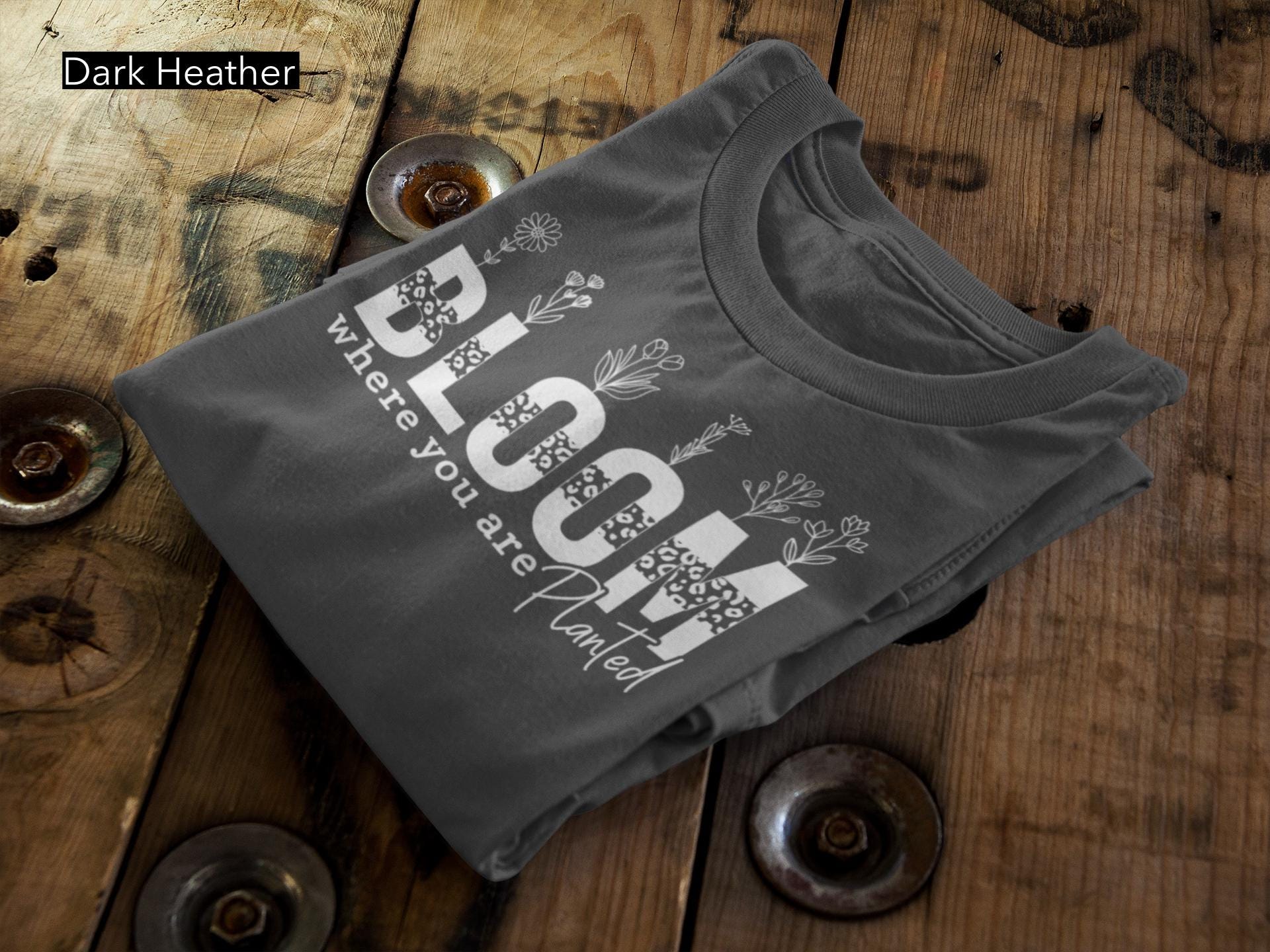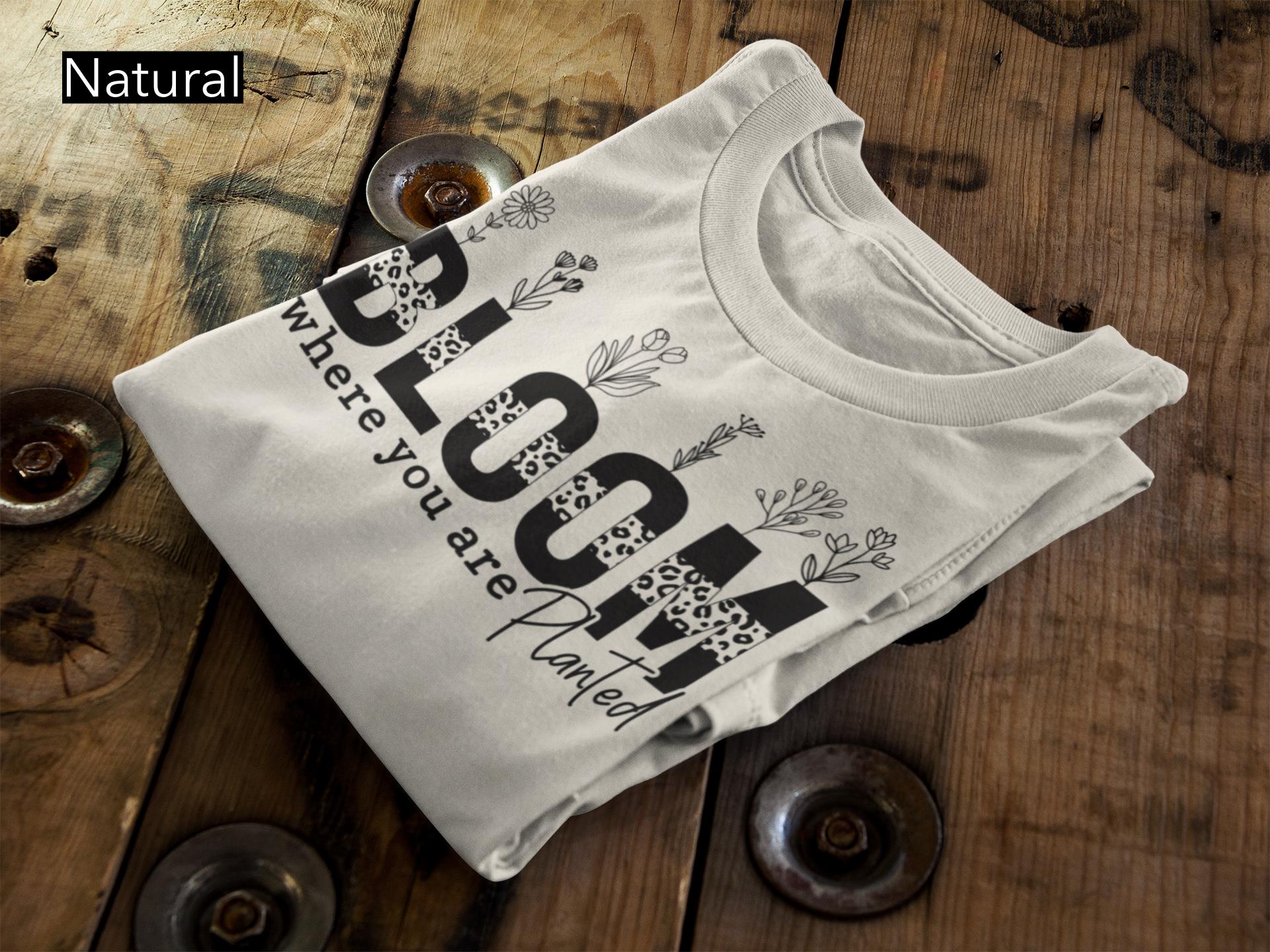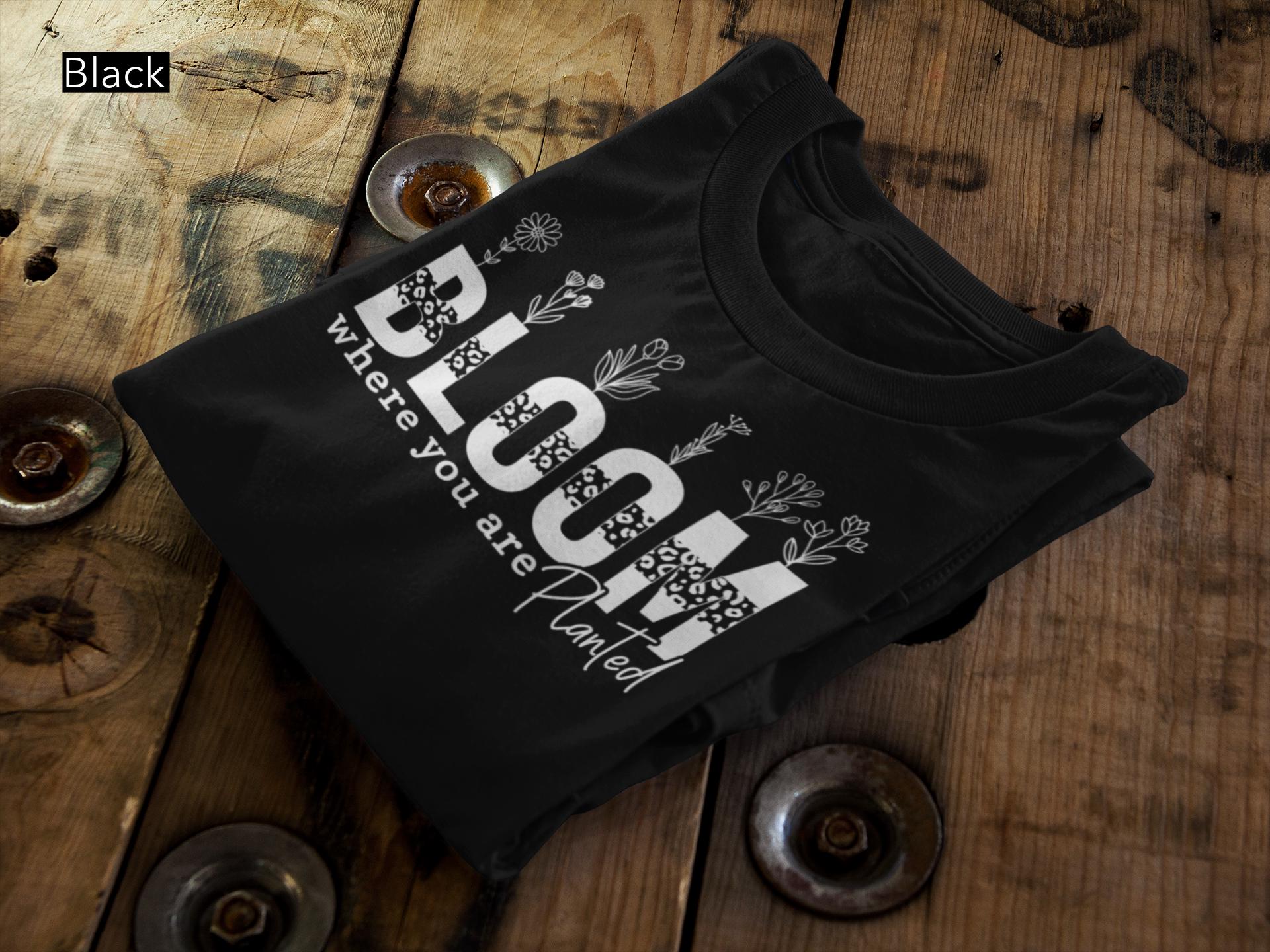 Embrace growth, resilience, and positivity with our beautifully designed “Bloom Where You Are Planted” t-shirt. Featuring elegant floral illustrations rising from bold lettering, this piece is a perfect reminder to thrive wherever life takes you.